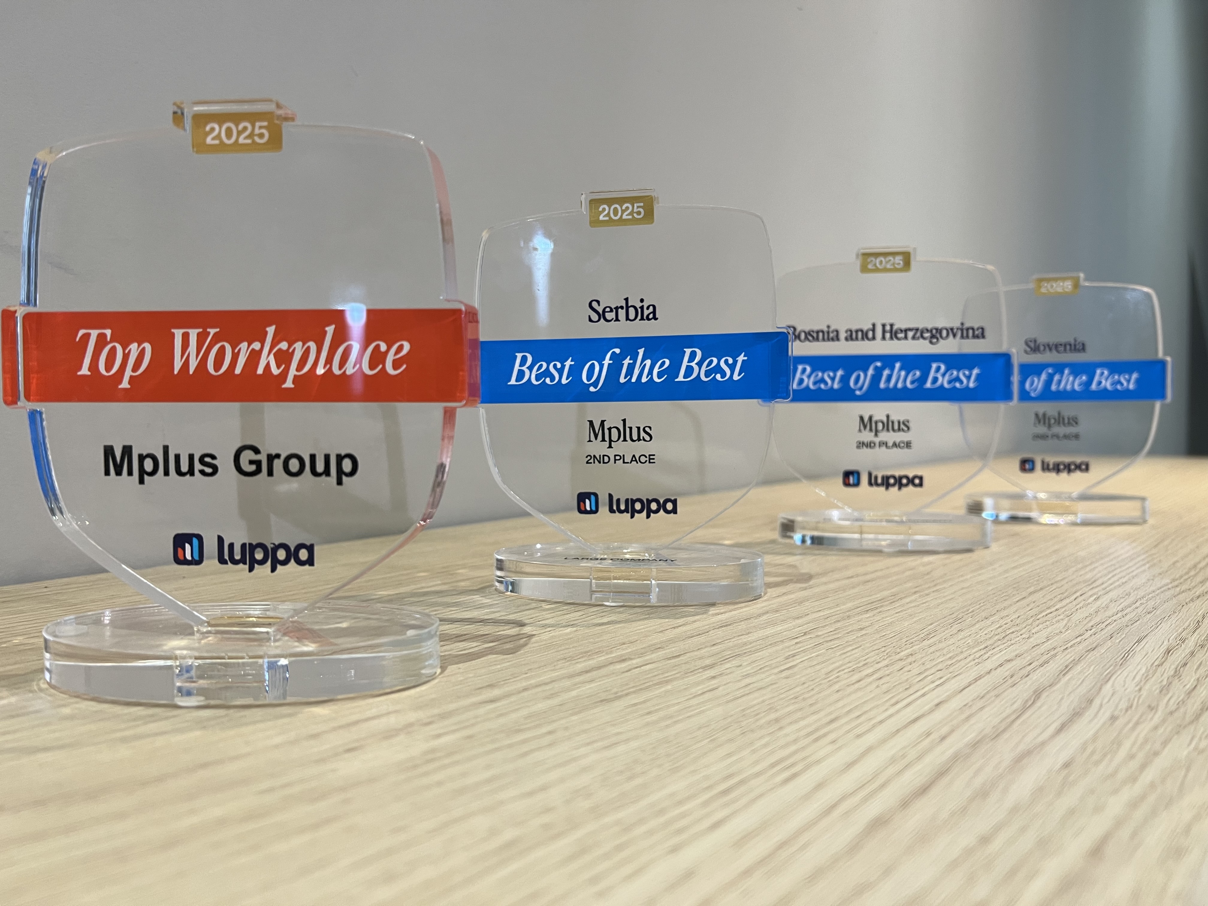 At the official awards ceremony organized by HR solutions provider - Luppa, Mplus was named Top Workplace at the group level (12,500+ employees), while Mplus Bosnia & Herzegovina, Mplus Slovenia, and Mplus Serbia received the prestigious Best of the Best award.